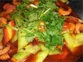 南美对虾、青瓜、胡萝卜、姜、蒜、花椒粒、八角、豆瓣酱、干辣椒、料酒、香菜、油、盐。