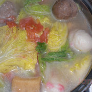 大白菜、鱼丸、番茄、香葱、姜、蒜、花椒粒。