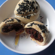 水油面团、普通面粉、玉米油、水、猪油、红豆泥、黑芝麻、白砂糖。