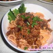 面粉、胡萝卜、绞肉、水、面碱、盐、豆瓣酱、葱花、花椒面、淀粉。