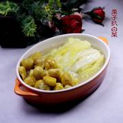 白菜心、板栗肉、鸡清汤、精盐、白糖、绍酒、味精、胡椒粉、香葱、水淀粉、烹调油。