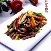 瘦牛肉条、彩椒、鲜芦笋、冬笋条、花雕酒、鲜酱油、蚝油、白糖、味精、黑胡椒碎、苏打、淀粉、橄榄油。