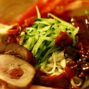 面、菠菜、黑木耳、金针菇、番茄、火腿、韩国辣椒酱、醋、酱油、芝麻酱。
