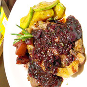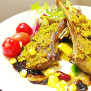 法式羊排、蒜、黑胡椒颗粒、盐、橄榄油、意大利黑醋、迷迭香、面包屑、法式芥末酱。