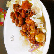 鸡大腿、洋葱、口蘑、生菜叶、姜片、黑胡椒、鸡蛋清、豌豆淀粉。