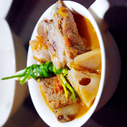 腔骨、莲藕、大西红柿、姜、葱白、大料、桂皮、野山椒、料酒、糖、盐。