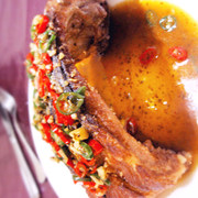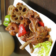 鸡琵琶腿、青红尖椒、莲藕、鸡蛋白、淀粉、王致和玫瑰腐乳、料酒、生抽、白砂糖、鸡精、白胡椒粉、玫瑰露、香油。