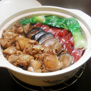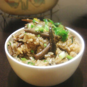 鸡琵琶腿、东北新米、糯米、蛋白、香菇、油菜、广式包仔香肠、热水、淀粉、料酒、生抽、生抽、蚝油、白糖、白胡椒、盐、香油、姜丝。