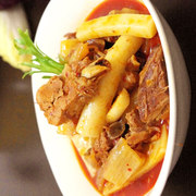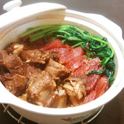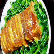 猪五花肉、红薯、姜片、生抽、老抽、料酒、玫瑰露酒、白糖、鸡精、白胡椒粉、花椒粉、香油、盐、蚝油。