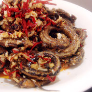 笔杆鳝鱼、辣椒丝、辣椒面、蒜蓉、姜蓉、花椒面、料酒、醋 、盐 、糖 。