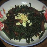 长豆角、肉、蒜末、葱花、花椒、盐、十三香、酱油、味精。