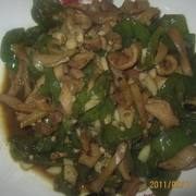 猪肚、青椒、蒜、姜、葱、盐、味精、酱油、干辣椒、十三香。