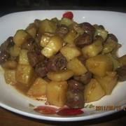 鸡心、土豆、葱、姜、八角、干辣椒、盐、十三香、酱油。