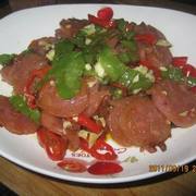 粉肠、青椒、红青椒、蒜末、盐、十三香、味精。