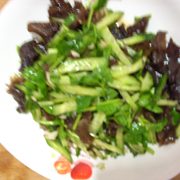 木耳、黄瓜、香菜、蒜、盐、味精、醋、酱油、香油。