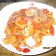 年糕、胡萝卜、白菜、圆葱、郫县豆瓣酱、白醋、糖、番茄酱。