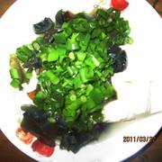 内酯豆腐、皮蛋、香葱、香菜、味精、香油。