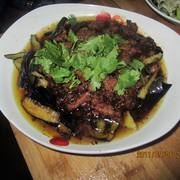 茄子、前腿肉、香菜、盐、味精、十三香、料酒、姜末、大酱、一小碗。