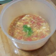 西红柿、鸡蛋、香菜段、蒜、盐、味精。