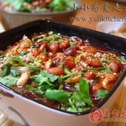红薯粉条、蒜瓣、鸡汤、花生米、芝麻、香菜末、葱花、香醋、酱油、香油、盐、糖、辣椒粉、郫县豆瓣酱。