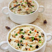 嫩豆腐、鲜虾仁、香菇、鸡蛋、香葱、盐、料酒、香油。
