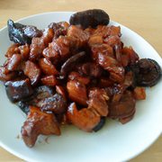 五花猪肉、香菇、糖、油、元葱、盐、大料、花椒、橙子皮、水。