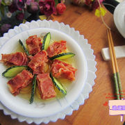 五花肉、黄瓜、葱、料酒、酱油、冰糖、八角、花椒、桂皮、香叶、盐、辣椒油、花椒面、姜、蒜。