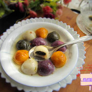 糯米粉、紫薯粉、南瓜粉、抹茶粉、芝麻馅。