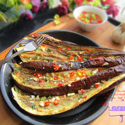 长条茄子、大蒜、香葱、红辣椒、盐、白砂糖、香油、油、生抽。