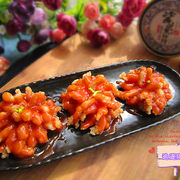 里脊肉、番茄酱、蚝油、豆瓣酱、小的山鸡蛋、淀粉、红椒、葱姜蒜、香菜。