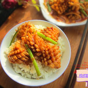 鱿鱼、洋葱、葱姜蒜、白酒、白胡椒粉、蒜蓉辣酱、甜面酱、蒸鱼豉油、麻油、生抽、料酒、老干妈、白糖、高汤。