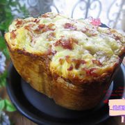 高筋粉、烫种、盐、砂糖、酵母、鸡蛋、牛奶、黄油、培根、洋葱碎、片状芝士、马苏里拉芝士碎、黑胡椒、披萨草。