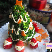 米饭、鸡蛋、胡萝卜、黄瓜、培根、西兰花、圣女果、草莓、沙拉酱。