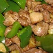 猪瘦肉、地瓜粉、油、姜丝、蒜蓉、青椒、盐、醋、酱油、鸡精。