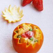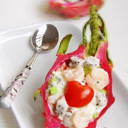 火龙果、虾仁、西芹、圣女果、沙拉酱。