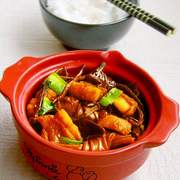 鸡翅根、香菇、青椒、葱、姜、蒜、酱油、鸡精、糖、湘式剁椒、料酒。