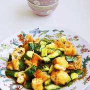 油条、黄瓜、麻汁、盐、味精、蒜、醋、酱油。