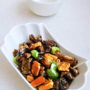 五花肉、茄子干、青辣椒、葱末、葱末、蚝油、酱油、八角。