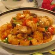 虾仁、豆腐、草菇、荷兰豆、青葱、姜、蛋清、水淀粉、财神蚝油、豆瓣酱、白糖、料酒、汤、盐、白胡椒粉。